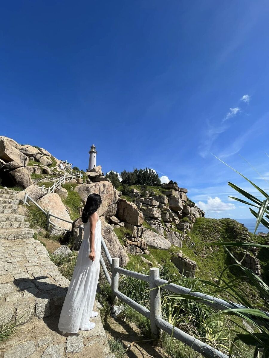 Hải đăng Mũi Điện Phú Yên dưới bầu trời xanh