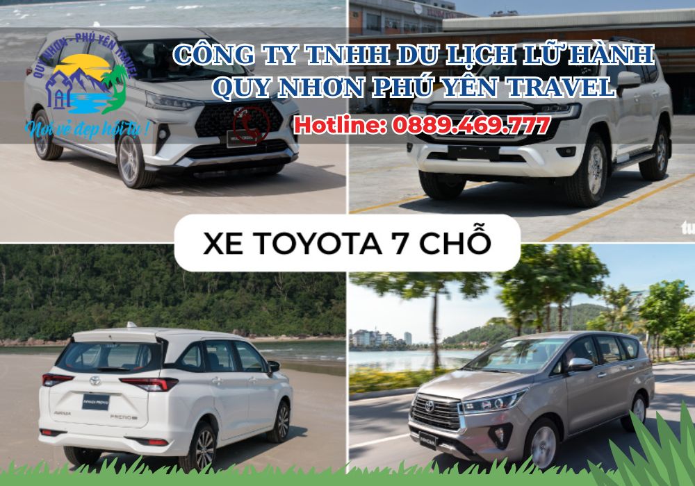 Xe 7 chỗ Quy Nhơn được nhiều gia đình chọn vì không gian thoải mái, khoang hành lý rộng. Các mẫu xe được thuê nhiều: Toyota Innova, Mitsubishi Xpander, Fortuner.